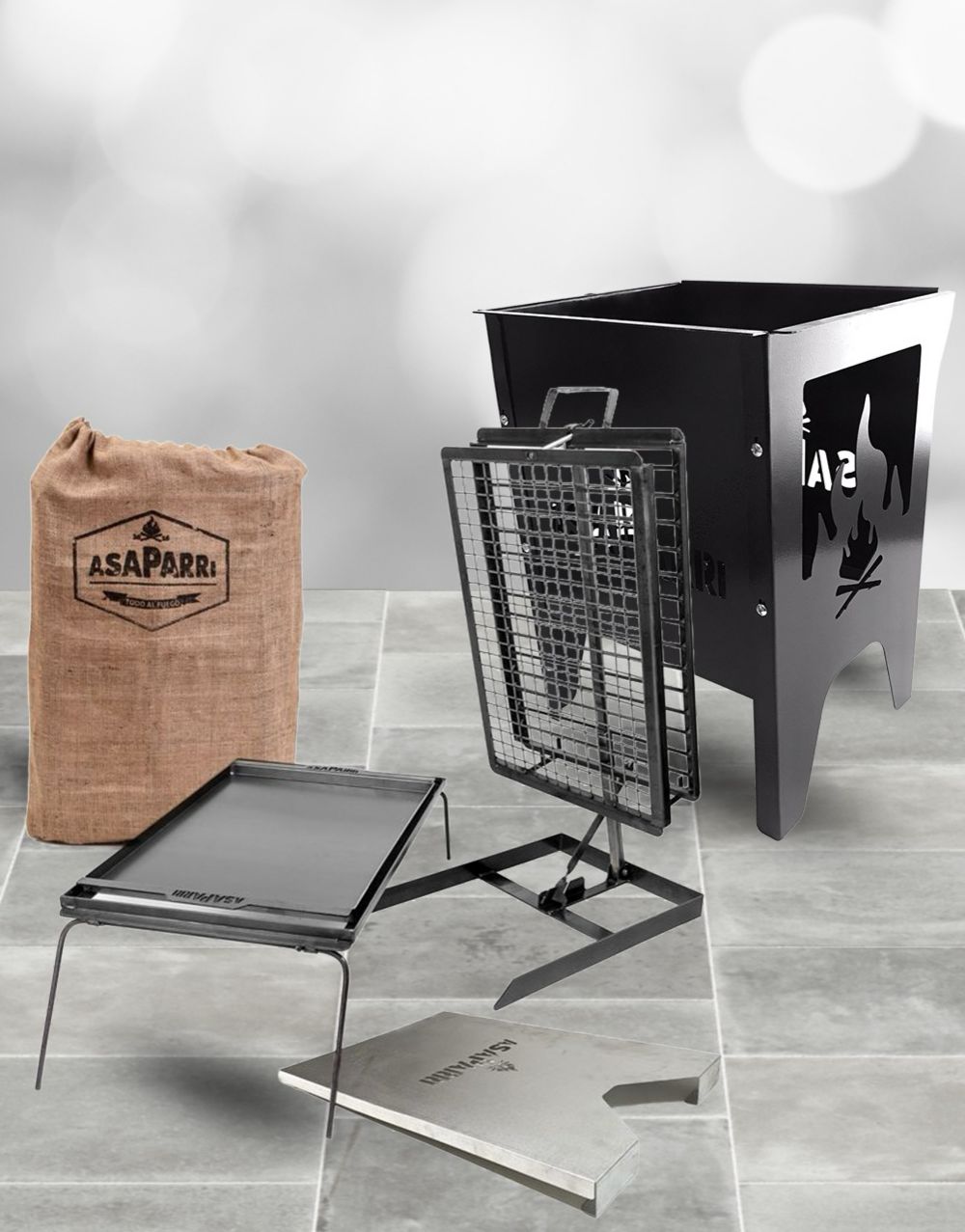 גריל ארגנטינאי המשמש כגריל, מתקן צליה איטית (Asador) או פשוט כמדורה להתכנסות חברתית וחימום. המוצר כולל גם מתקן צליה נייד רב תכליתי במידות 60*40 ס”מ הכולל את כל האביזרים לחוויית צליה מושלמת