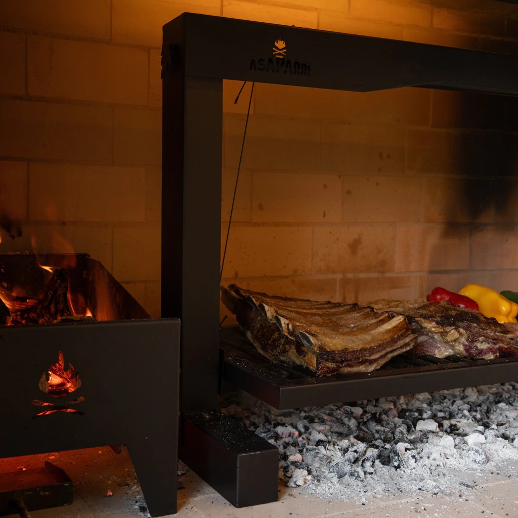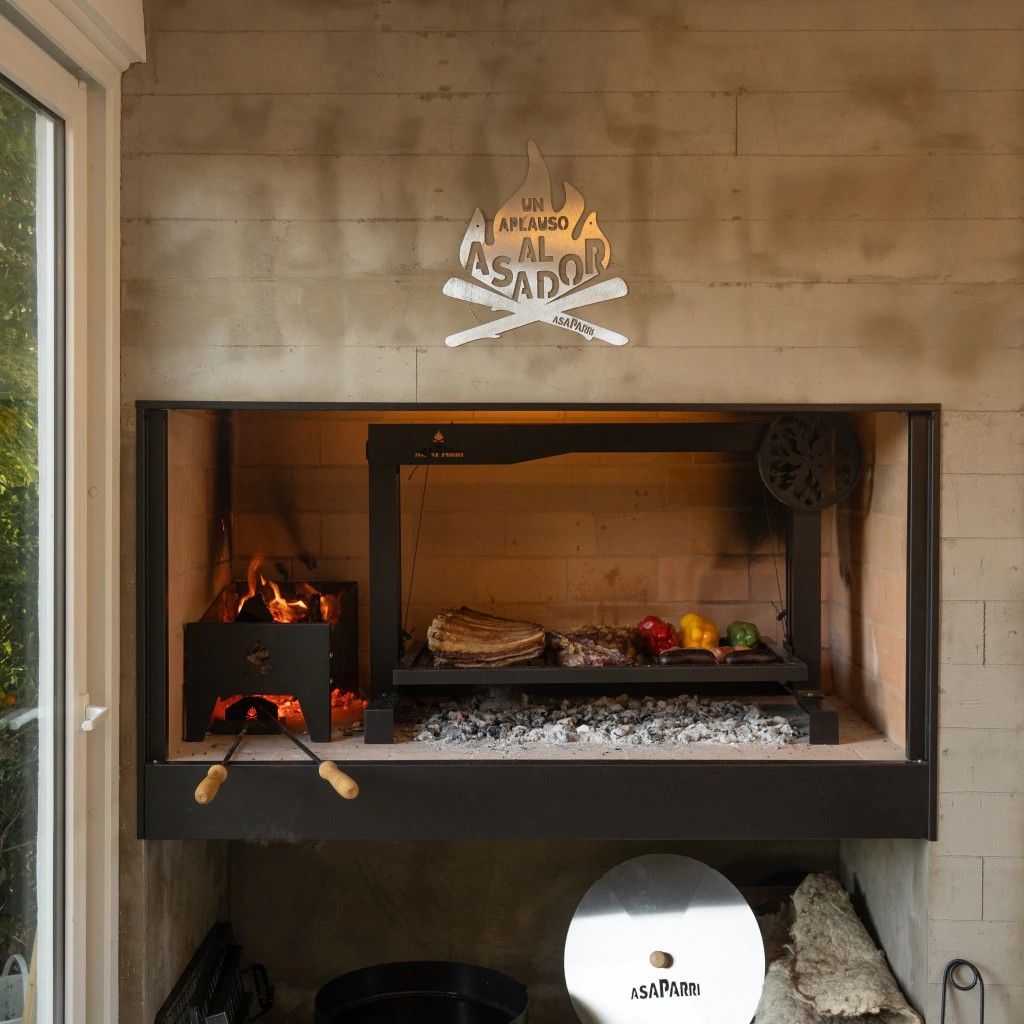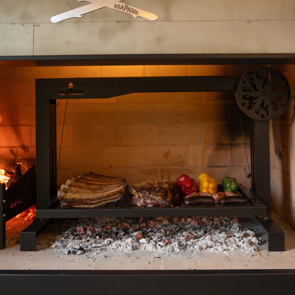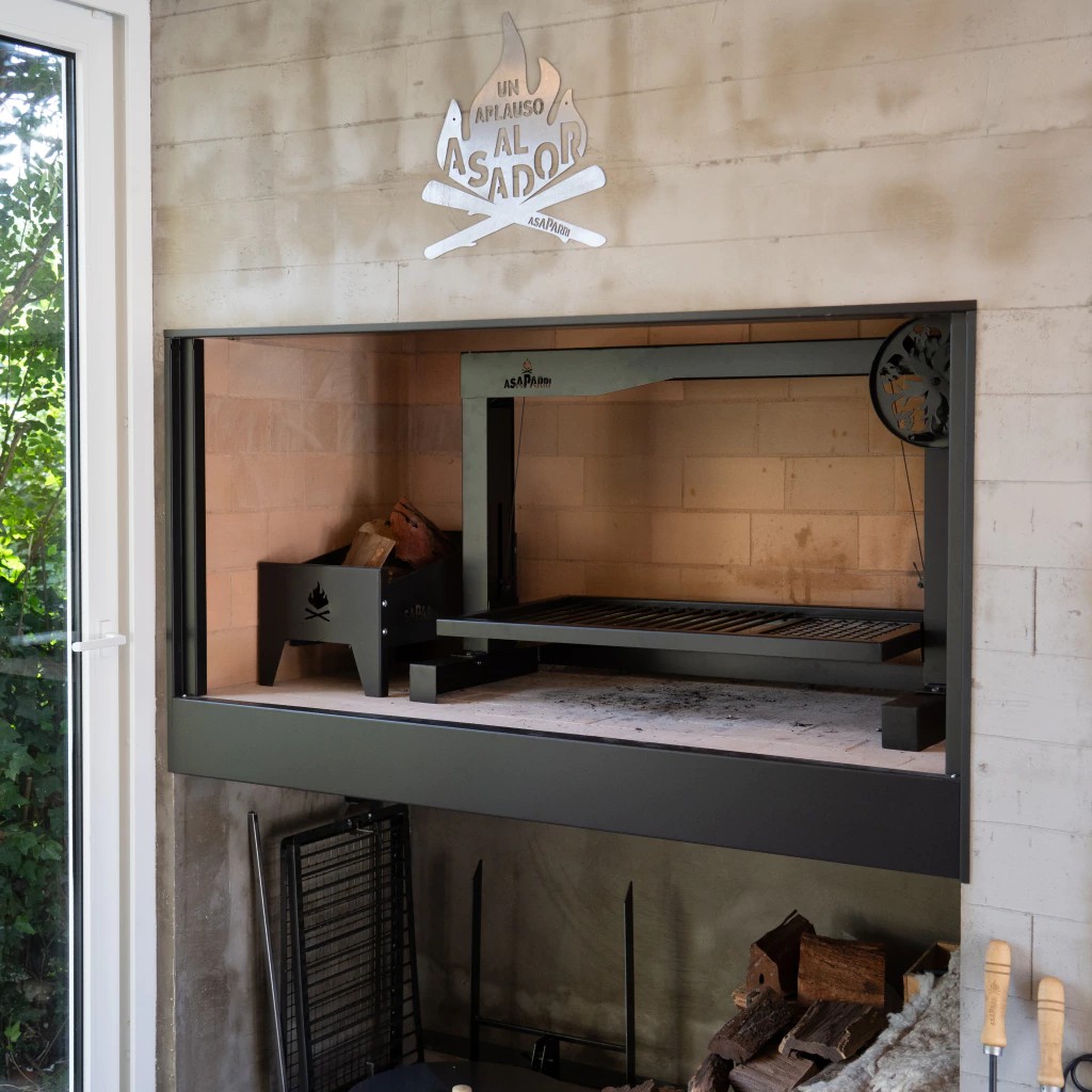 גריל פחמים עם רשת מתכווננת גדולה להתקנה בגומחה או בבסיס קיים